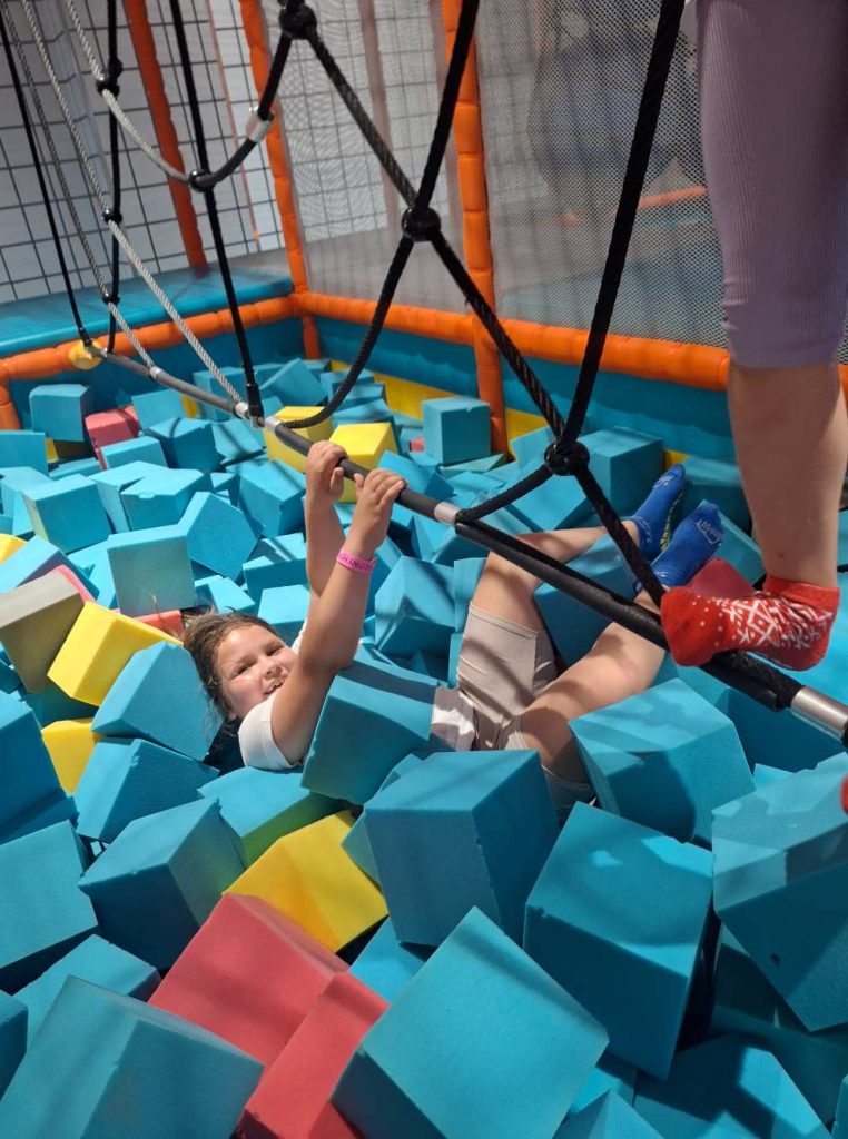Po edukacyjnej części przyszedł czas na zabawę – i to taką na całego! W Hopa Lupa każdy znalazł coś dla siebie: trampoliny, zjeżdżalnie, tunele, ogromny tor przeszkód i oczywiście basen z kulkami.😉