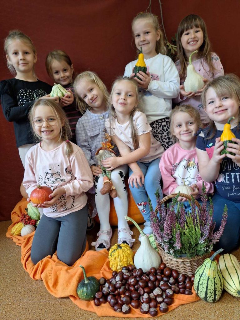 Jesień zagościła na dobre w naszej zerówce! Dzieci wspólnie z Panią stworzyły piękny kącik przyrody, przynosząc dary jesieni: kolorowe liście, kasztany, żołędzie, szyszki oraz inne naturalne skarby. Zebrane materiały wykorzystywane są podczas zajęć dydaktycznych i zabaw, rozwijając zmysły, wyobraźnię i ciekawość najmłodszych.